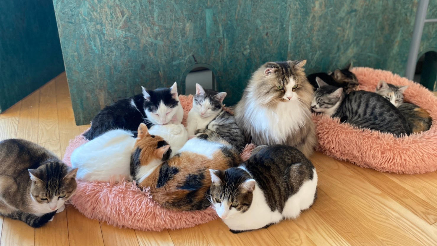 こちらでは、居場所を転々として生きてきたネコもいますが、「保護猫カフェ ムスビ」がこれからの安住の場所となります。